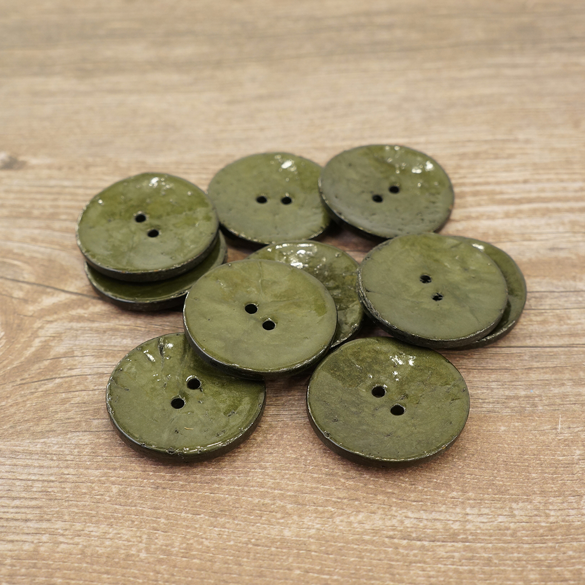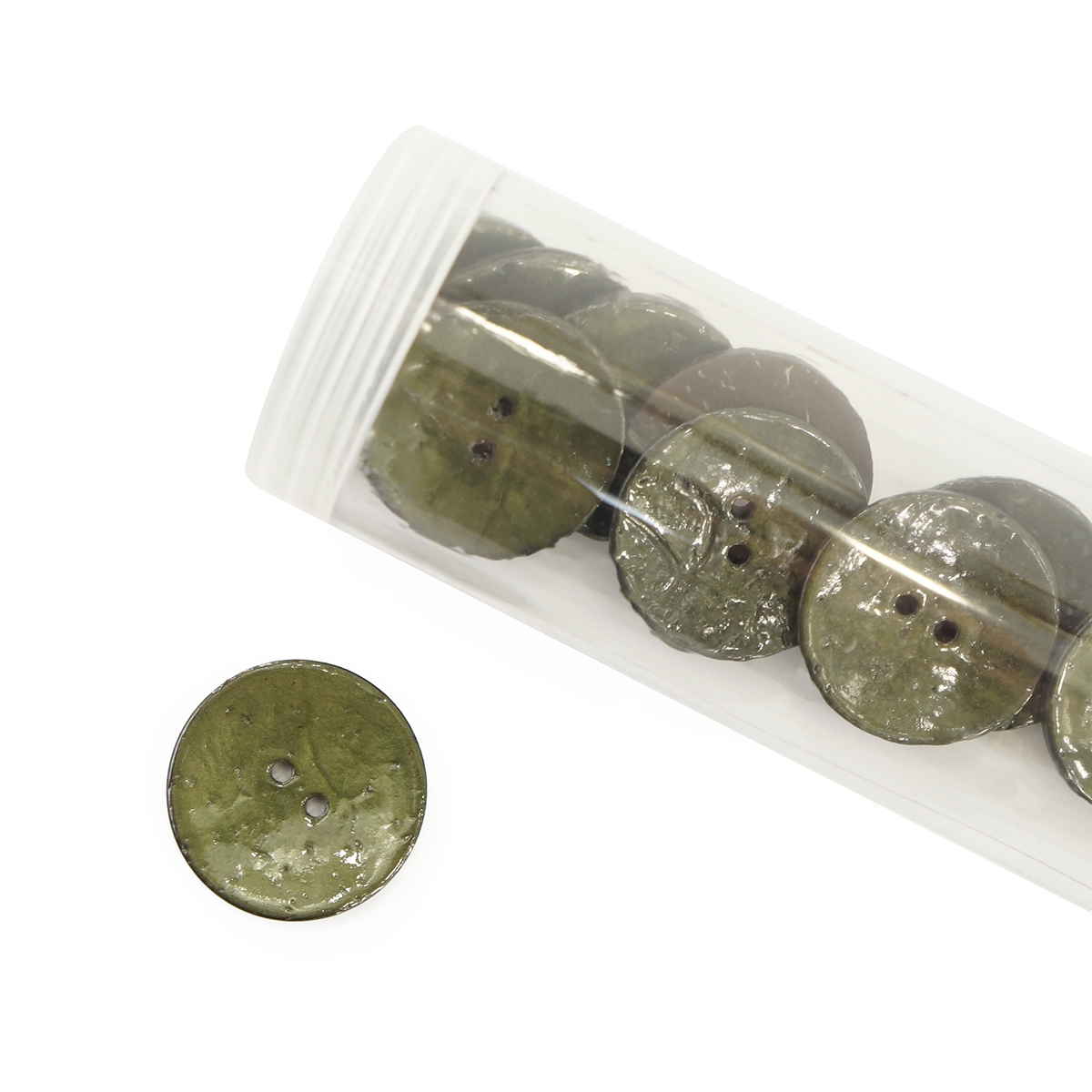 Пуговицы CONCEPT из натурального кокоса изготовлены из скорлупы кокосового ореха. Это необычный продукт. Пуговицы из кокоса отличаются от обычных пуговиц своей экологичностью, ведь пуговки изготовлены из настоящего фрукта. Технология изготовления самих пуговиц уникальна: основа пуговок полируется до блеска и отбеливается, затем на пуговицы распыляют смолу, которая создает перламутровый эффект с металлическим блеском, и только потом окрашивают водным красителем.