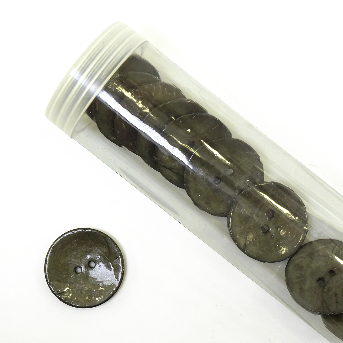 Пуговицы CONCEPT из натурального кокоса изготовлены из скорлупы кокосового ореха. Это необычный продукт. Пуговицы из кокоса отличаются от обычных пуговиц своей экологичностью, ведь пуговки изготовлены из настоящего фрукта. Технология изготовления самих пуговиц уникальна: основа пуговок полируется до блеска и отбеливается, затем на пуговицы распыляют смолу, которая создает перламутровый эффект с металлическим блеском, и только потом окрашивают водным красителем.