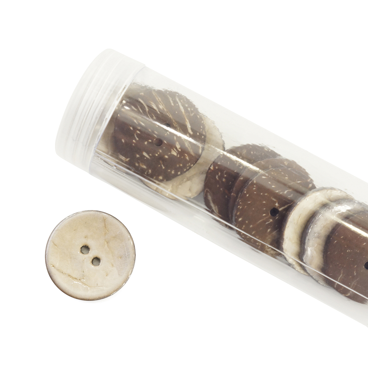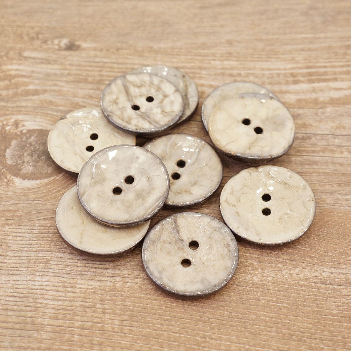 Пуговицы CONCEPT из натурального кокоса изготовлены из скорлупы кокосового ореха. Это необычный продукт. Пуговицы из кокоса отличаются от обычных пуговиц своей экологичностью, ведь пуговки изготовлены из настоящего фрукта. Технология изготовления самих пуговиц уникальна: основа пуговок полируется до блеска и отбеливается, затем на пуговицы распыляют смолу, которая создает перламутровый эффект с металлическим блеском, и только потом окрашивают водным красителем.