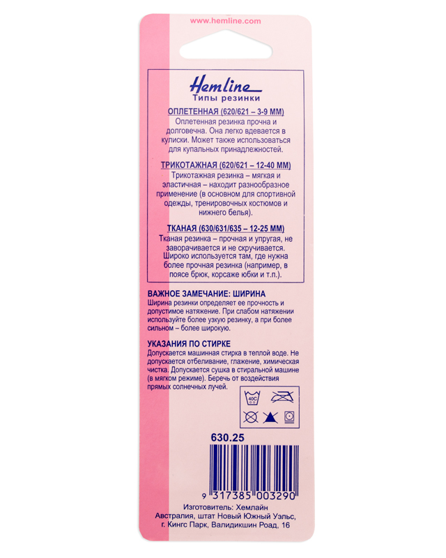 Типы резинки Hemline (информация на обратной стороне блистера).