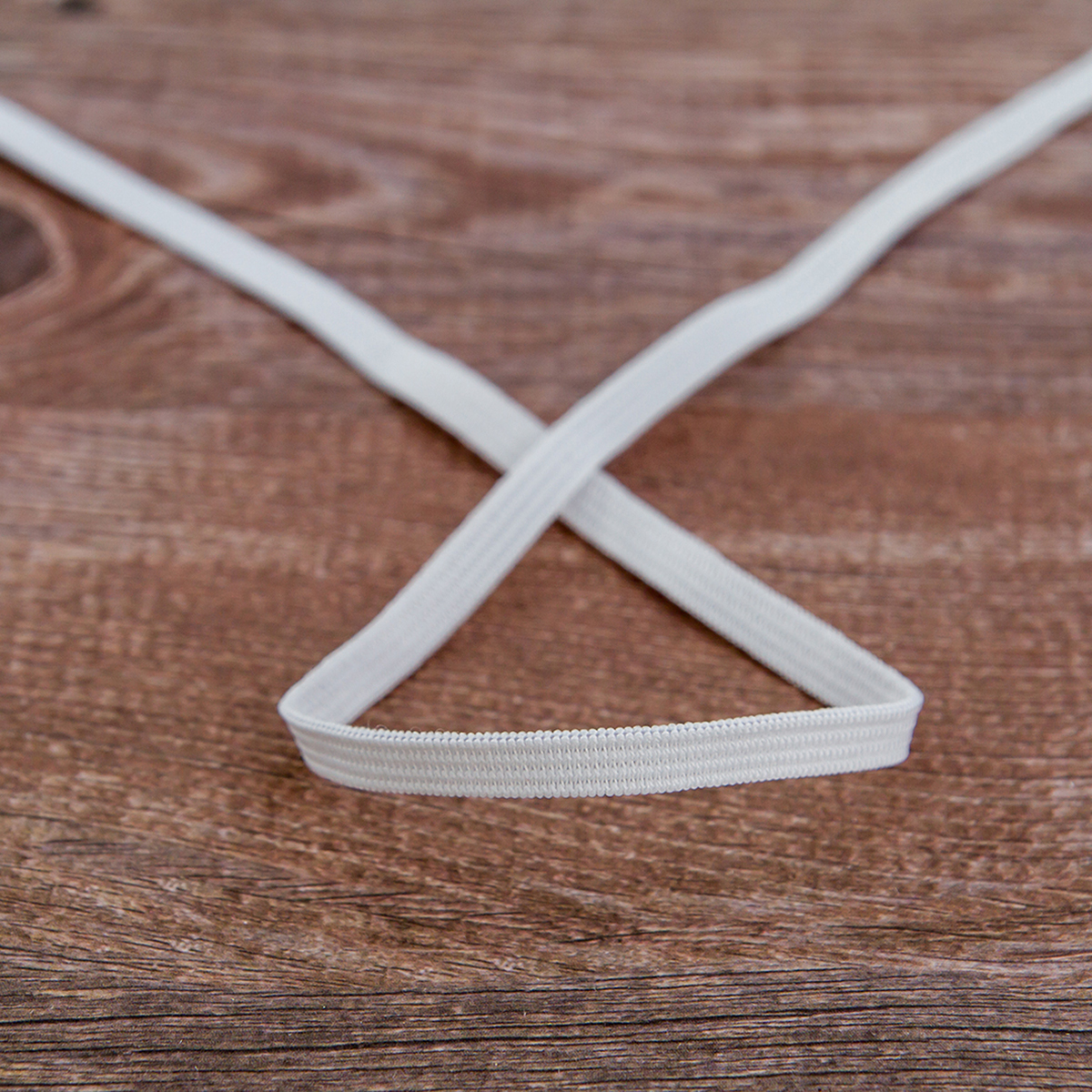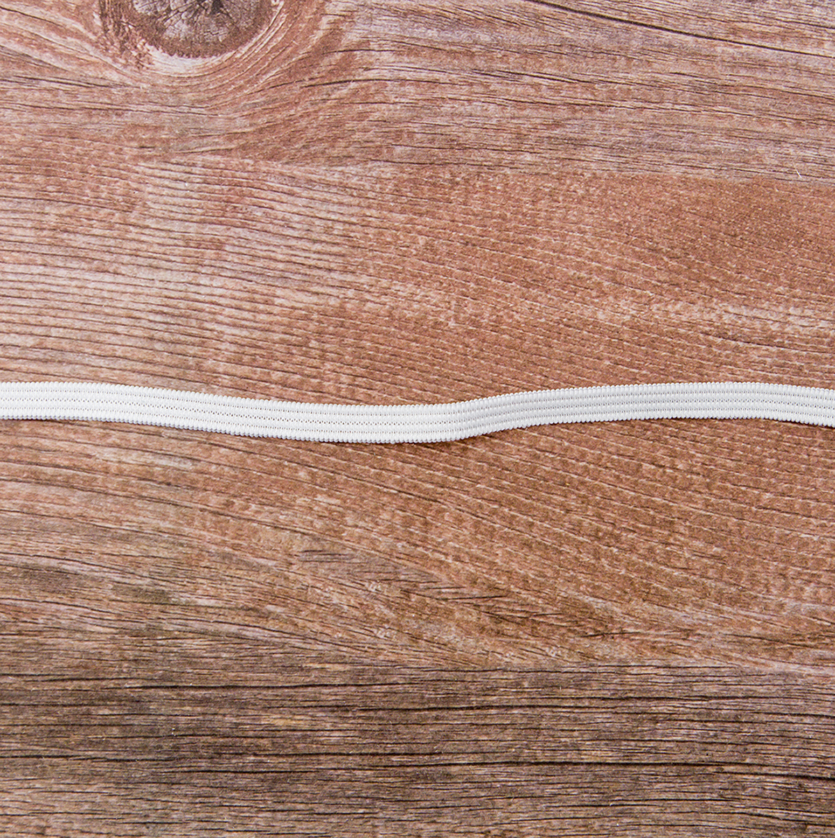 Тканая резинка – прочная и упругая, не заворачивается и не скручивается. Широко используется там, где нужна более прочная резинка (например, в поясе брюк, корсаже юбки и т.п.).
