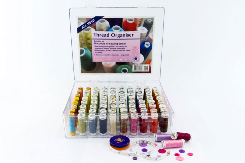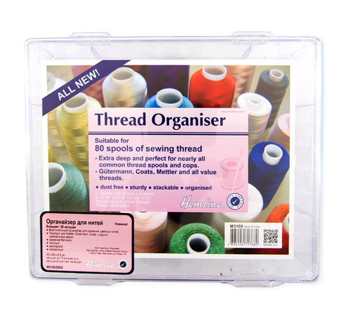 Коробка для катушек универсальных нитей Gütermann, Coats, Mettler и других премиальных марок. На 80 катушек. Прочная, защищает нити от пыли. Надёжные замки. Помещаются катушки до 73 мм в высоту.