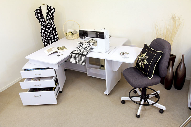 Стол для швейной машины с раскройным местом QUILTERS VISION. Компактный рабочий кабинет швеи. Это идеальное рабочее место для любого, кто занимается квилтингом на любом уровне профессионализма. Платформа под швейную машинку 615 х 320 мм, оснащена гидравлическим подъемником. Грузоподъемность 19 кг, 500 ньютонов. Удобная задняя раскладная панель для стежки, большой стол для раскроя ткани.