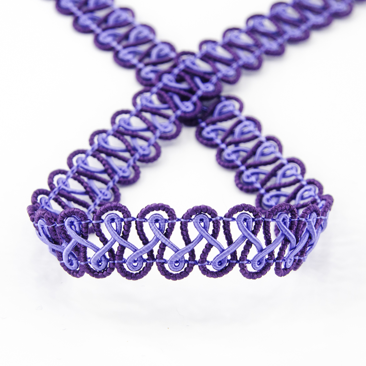 Высококачественная износостойкая тесьма классических узоров плетения, применяется непосредственно для отделки костюмов и пальто из твида и рогожки для создания стиля шанель, а также в прикладном варианте для декорирования сумок, шляпок и иных галантерейных проектов. Также создает стильный штрих при декорировании абажуров, подушек и других текстильных интерьерных задумок; применяется для отделки сценической одежды и костюмов "под старину"
