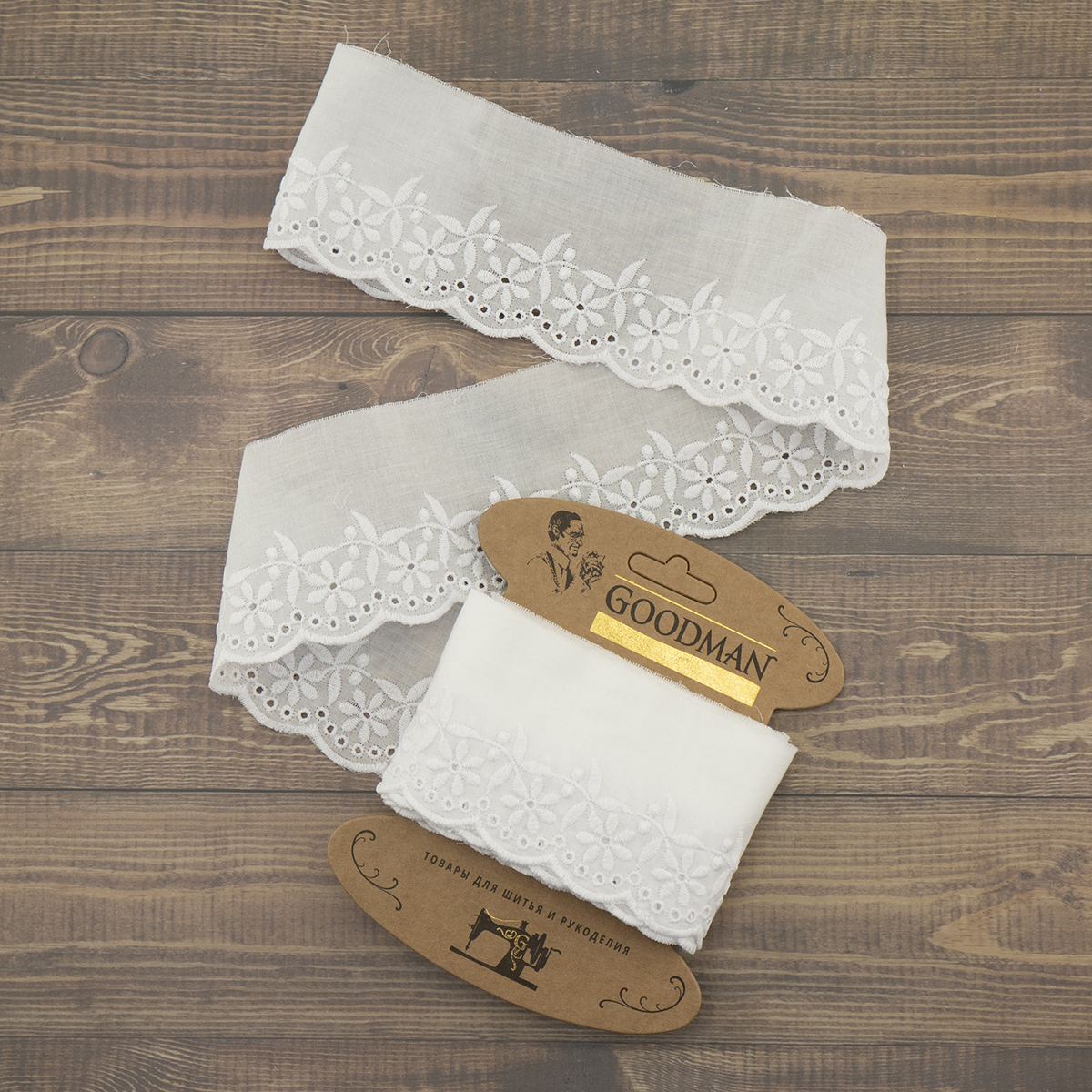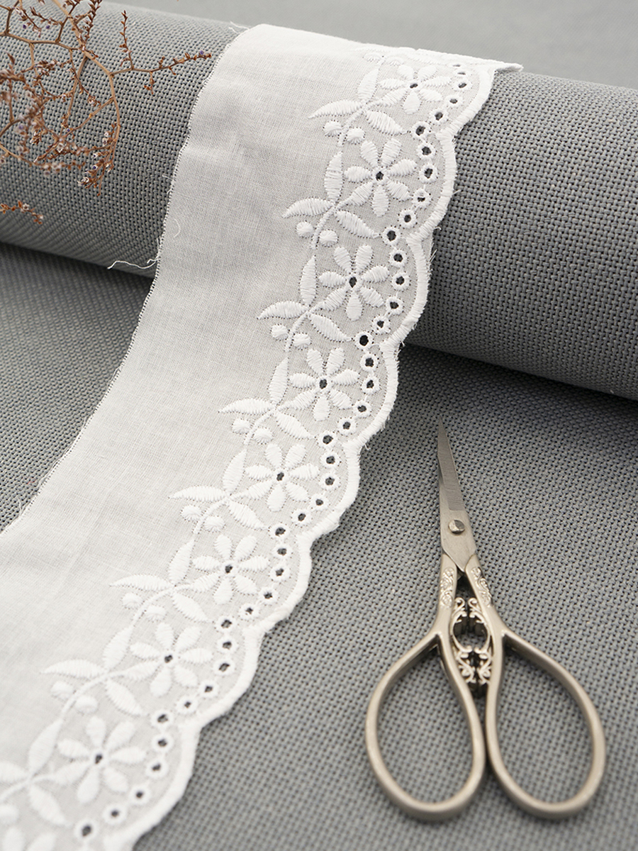 Шитье выполнено хлопчатобумажными нитями № 40 на батисте, сфера применения: отделка домашней, детской и женской одежды, столового и постельного белья. Также используется как элемент декора различных рукодельных текстильных проектов. Используйте режим деликатной стирки при 40 градусах, сушить в расправленном виде, глажение при 2 температурном режиме.