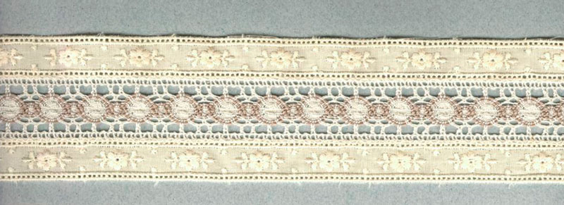 Комбинированное шитьё со вставкой мерсеризованного хлопкового кружева, вышитого хлопковыми нитями № 40; сфера применения - изысканный декор женской и детской одежды ; в рукоделии - для кукольной темы и декорирование творческих рукодельных проектов. Стирать при 30 градусах, ручная стирка, сушить в расправленном виде. Гладить при 2 температурном режиме на подложке.