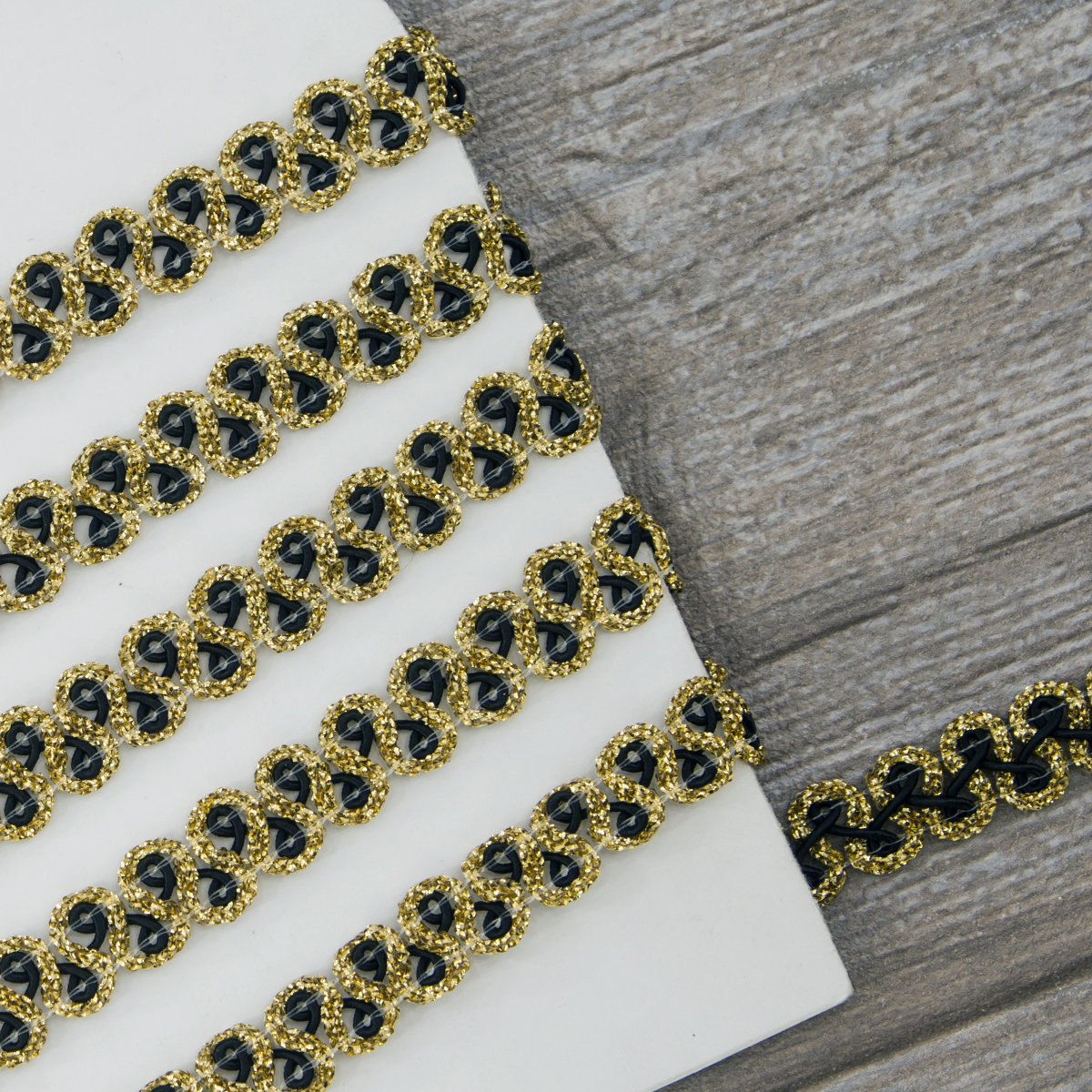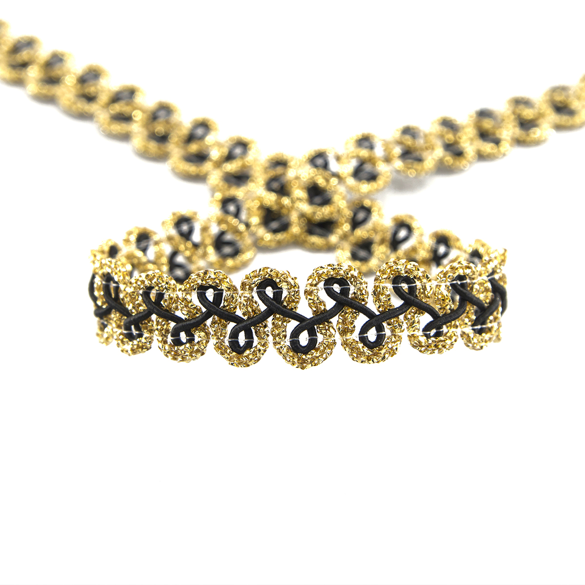 Высококачественная износостойкая тесьма классических узоров плетения, применяется непосредственно для отделки костюмов и пальто из твида и рогожки для создания стиля шанель, а также в прикладном варианте для декорирования сумок, шляпок и иных галантерейных проектов. Также создает стильный штрих при декорировании абажуров, подушек и других текстильных интерьерных задумок; применяется для отделки сценической одежды и костюмов "под старину"