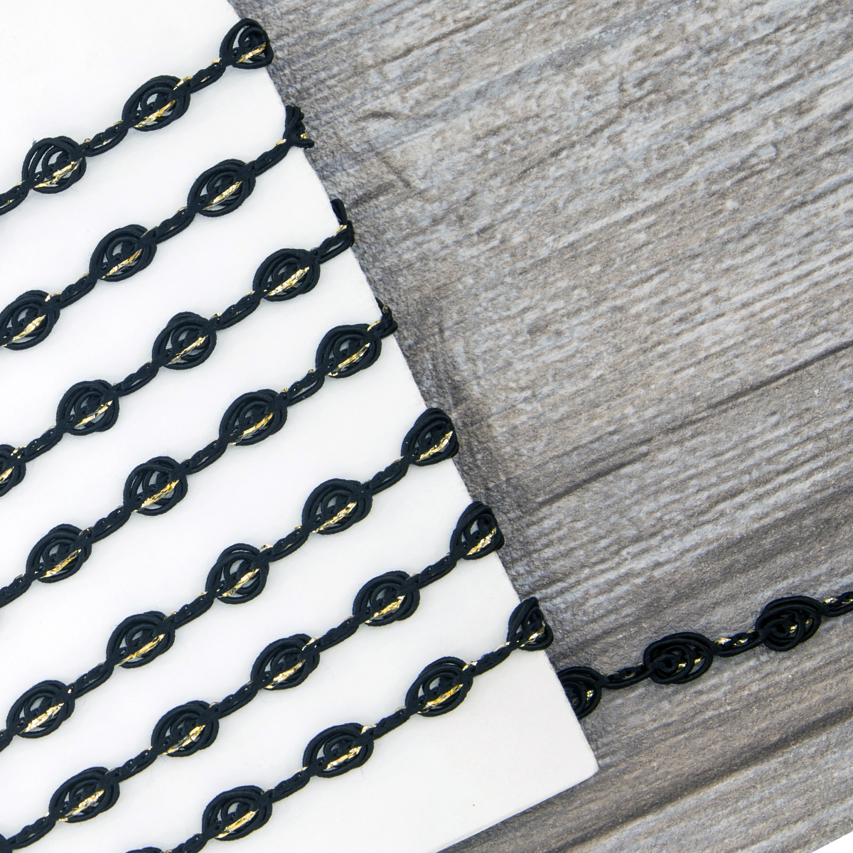 Тесьма с повышенной износостойкостью, стойкого окраса, пластичная, с благородным блеском стильными и классическими дизайнами узора, Применяется для декорирования верхней одежды и одежды из плотных тканей, а также для рукодельных и хоббийных текстильных проектов; предметов интерьера, таких как покрывал, подушек, ламбрекенов, штор, скатертей, абажуров. Тесьма с люрексным компонентом используется для сценической, карнавальной и кичевой одежды,