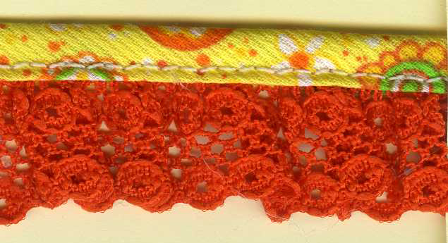 Полиамидное кружево в виде рюша в окантовке из х/б косой бейки. Сфера применения - детская одежда, аксессуары для детской, домашняя одежда и предметы текстильного интерьера. Стирать при температуре не выше 60 градусов, гладить при 2 температурном режиме. Рекомендуем использовать косую бейку из единой коллекции.