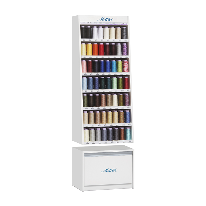 Универсальный стенд нитей SERACOR, 120, 2500 м для специализирующихся на лоскутном шитье и машинной вышивке магазинов. Удобная намотка, достойная презентация .Наполнение: Нить оверлочная универсальная, SERACOR, 120, 2500 м : 56 ячеек/50 цветов (47 цветов по 1 бобине на цвет + 3 цвета ( черный, белый, молочно-белый) по 3 бобины на цвет).