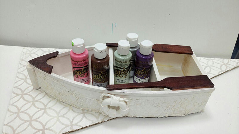 В палитре 11 чудесных блестящих оттенка, от классического золота до сверкающего аквамарина и изысканного кармазинного. Краски на водной основе, поэтому кисти и спонжи легко отмываются в воде. Краска укрывистая, но для плотного тона необходимо сделать два слоя с промежуточной просушкой. Краски ложатся на любую поверхность: дерево, фанера, ДСП, МДФ, картон, ткань, кожу, пластик и стекло. Советуем предварительно загрунтовать эту поверхность подходящим грунтом: