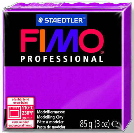Полимерная глина FIMO professional - это улучшенная FIMO classic. Полимерная глина используется для лепки всевозможных изделий от украшений до элементов декора интерьера. Дает в результате работы с ней - чистые цвета при смешивании, обладает высокой степенью прочности, что позволяет применять сложные техники. Полимерная глина выглядит и лепится как пластилин, но затвердевает и принимает законченный вид только после запекания в духовке при 110 °C около 30 минут. Его составляющие это - ПВХ и пластикосвязующее вещество.