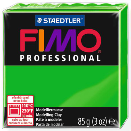 Полимерная глина FIMO professional - это улучшенная FIMO classic. Полимерная глина используется для лепки всевозможных изделий от украшений до элементов декора интерьера. Дает в результате работы с ней - чистые цвета при смешивании, обладает высокой степенью прочности, что позволяет применять сложные техники. Полимерная глина выглядит и лепится как пластилин, но затвердевает и принимает законченный вид только после запекания в духовке при 110 °C около 30 минут. Его составляющие это - ПВХ и пластикосвязующее вещество.