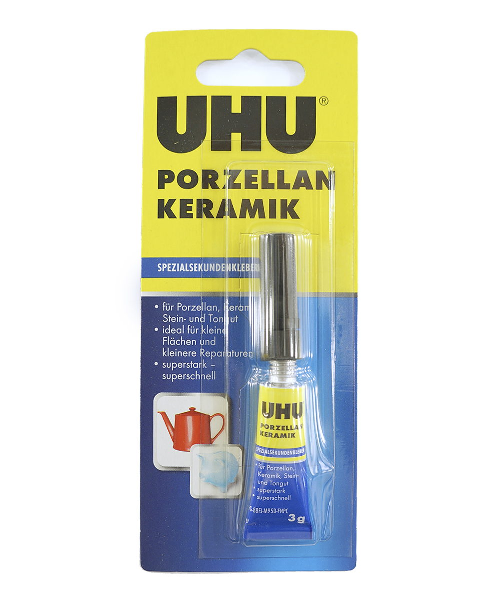 Клей UHU Porzellan предназначен для склеивания: фарфора, керамики, фаянса и т.п. материалов как между собой, так и в сочетании с другими материалами: деревом, твёрдыми материалами с гладкой поверхностью ( твёрдый ПВХ, сталь, железо, прочие металлы и т.д.).Клей абсолютно прозрачен, даёт практически невидимое клеевое соединение.