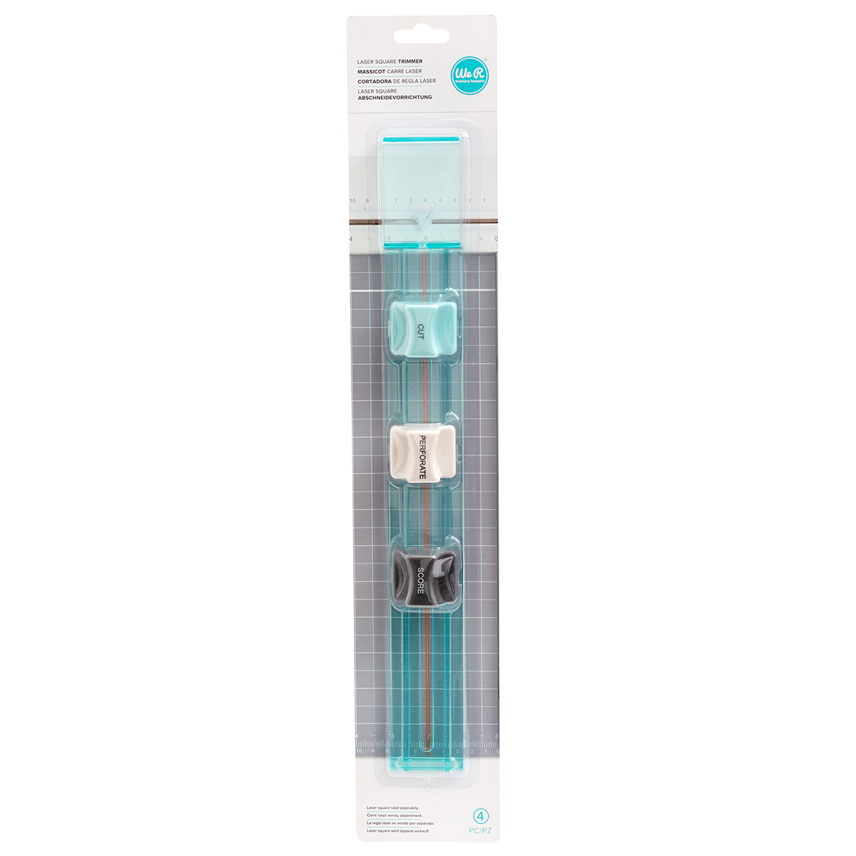 Резак закрепляется на лазерной линейке из набора . В комплекте три сменных лезвия с разными дизайнами: перфорация, прямой разрез, биговка.