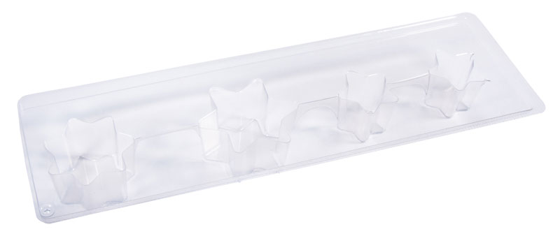Из прозрачного пластика для многоразового использования, термостойкая до 60 °C. Четыре формы: 5,5 x 5,5 см для мыла весом 42 г,