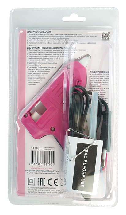 1 клеевой пистолет, 2 стержня для пистолета диаметром 7 мм, 1 металлическая мини-подставка