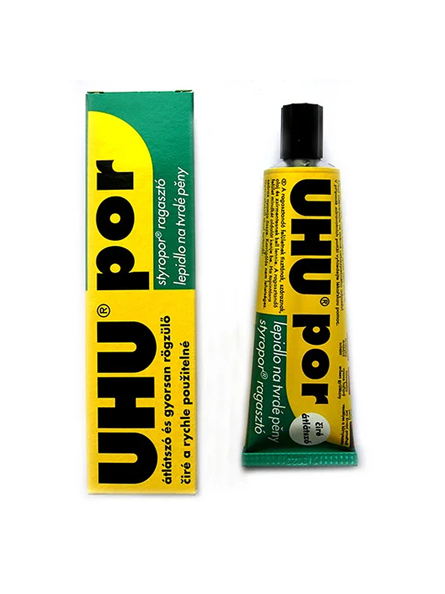 Контактный клей на основе искусственного каучука для склеивания разных сортов пенопласта (например стиропора), как между собой так и в сочетании с другими материалами (деревом, бумагой, текстилем, металлом, керамикой и др.). Идеально для склеивания цветных сортов бумаги со специальной пропиткой, а также фотобумаги.