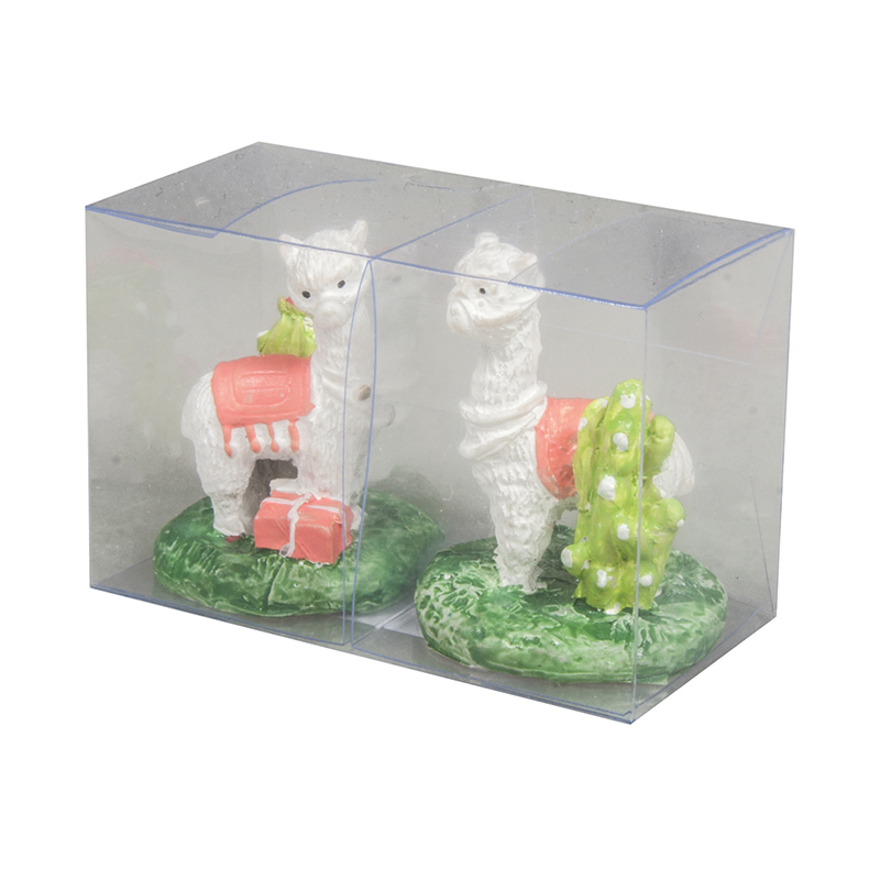 Белая лама с оранжевым седлом поставляется в коробке из ПВХ.