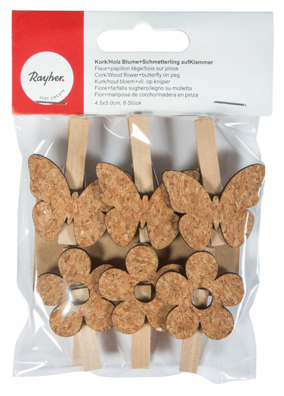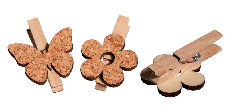 Декоративные прищепки с украшением из натуральной пробки "Цветы и бабочки". Арт 63004000