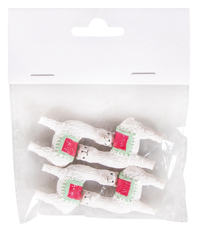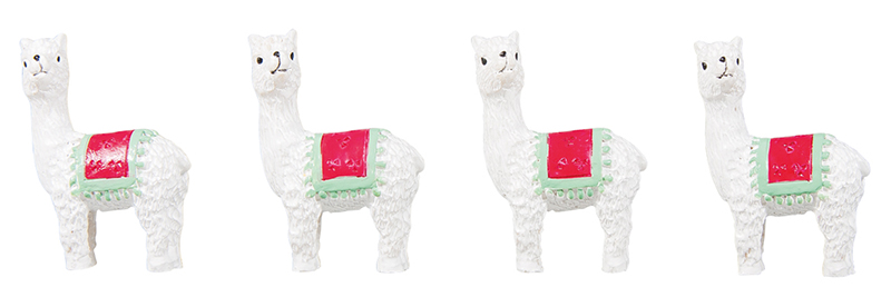 Четыре белых ламы с цветным седлом, устойчивые на поверхности, идеально подойдут для многих идей по декору.