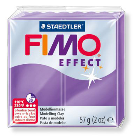 Когда заходит речь о создании ярких моментов, полимерная глина FIMO Effect предлагает новые решения. Благодаря широкому ассортименту потрясающих цветов Ваши изделия смогут блестеть, искриться, мерцать и даже пылать в темноте. С их помощью Вы сможете реалистично имитировать драгоценные камни и натуральные поверхности. Полимерная глина выглядит и лепится как пластилин, но затвердевает и принимает законченный вид только после запекания в духовке при 110 °C около 30 минут. Его составляющие это - ПВХ и пластикосвязующее вещество. По твердости схожей с FIMO Professional.