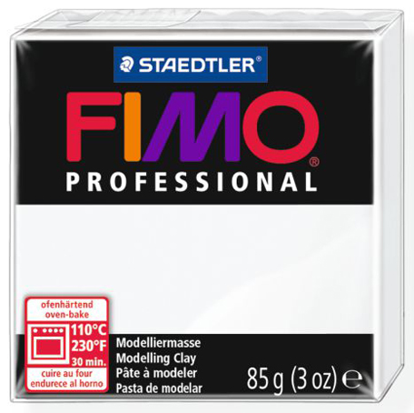 Полимерная глина FIMO professional - это улучшенная FIMO classic. Полимерная глина используется для лепки всевозможных изделий от украшений до элементов декора интерьера. Дает в результате работы с ней - чистые цвета при смешивании, обладает высокой степенью прочности, что позволяет применять сложные техники. Полимерная глина выглядит и лепится как пластилин, но затвердевает и принимает законченный вид только после запекания в духовке при 110 °C около 30 минут. Его составляющие это - ПВХ и пластикосвязующее вещество.