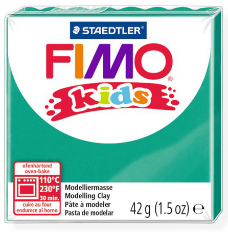 FIMO Kids - новый вид полимерной глины для детей. Мягкая, яркая и приятная на ощупь, она привлекает детей. Мягче, чем FIMO Soft. Можно сразу приступтить к лепке без предварительного размягчения. Полимерная глина выглядит и лепится как пластилин, но затвердевает и принимает законченный вид только после запекания в духовке при 110 °C около 15-30 минут (в зависимости от размера изделия), потом дать остыть. Его составляющие это - ПВХ и пластикосвязующее вещество.