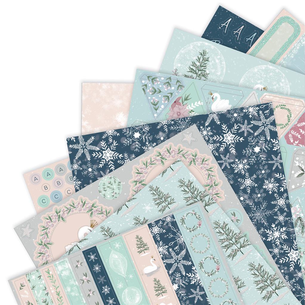 Окунитесь в праздничное настроение с этим великолепным набором для скрап-поектов. Эта волшебная рождественская коллекция, напоминающая о сказочном чуде принцессы-лебедя, сверкает белыми переливающимися блестками. Перья, цветы и снежинки выполнены в приглушенной палитре пастельных тонов, придавая всей коллекции безмятежный и мистический вид. Этот набор включает в себя 22 листа формата А4 (11 дизайнов) с вырезанной каймой, держатели этикеток, банты, бирки, карточки для журнала, карманы для хранения. мини-конверты. листы с наклейками с алфавитом и пергаментные листы. 48 Листов.
