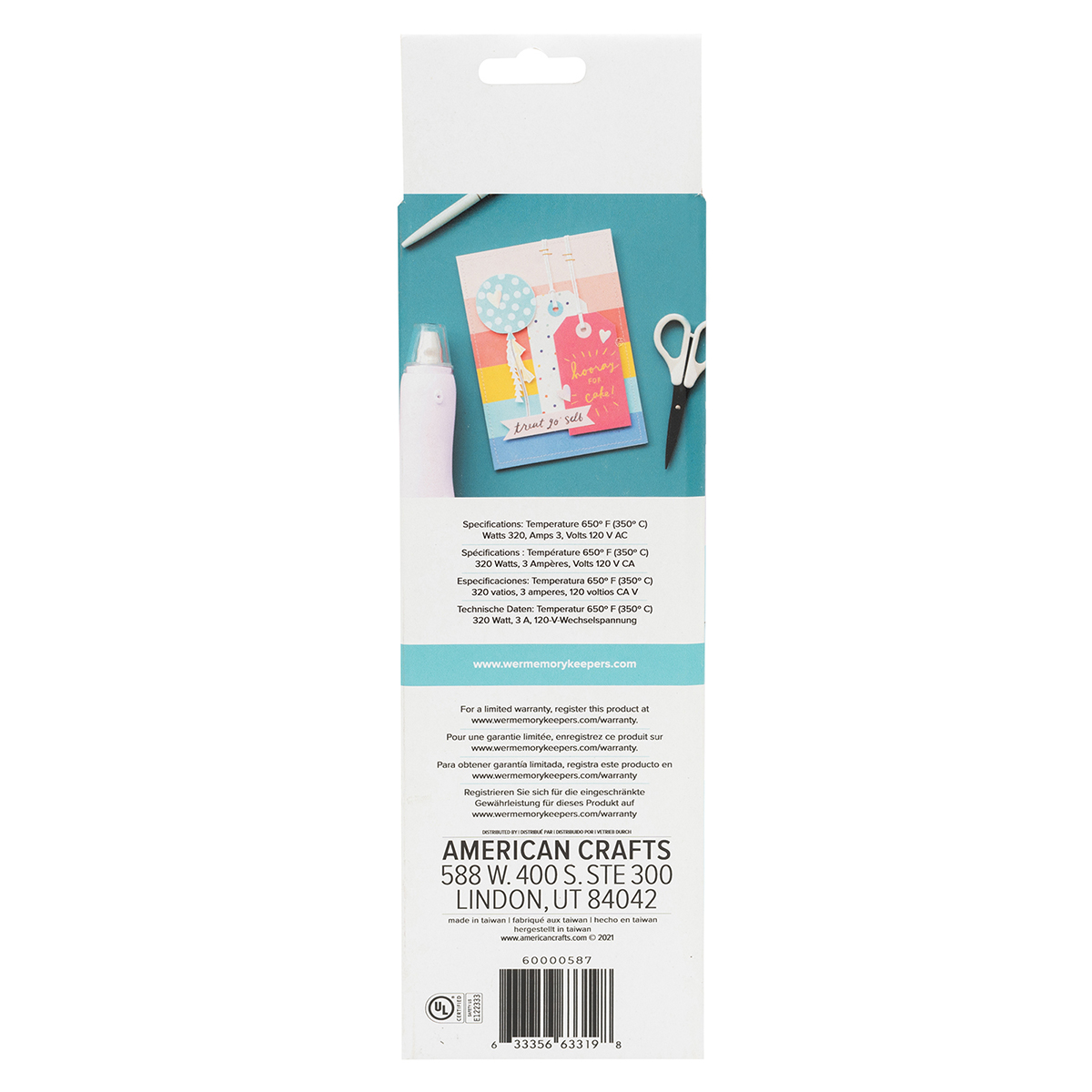 Фен от We R Memory Keepers — идеальный инструмент для эмбоссинга, смешанных мультимедийных проектов и многого другого. Он отлично подходит для тиснения порошком, сушки краски и клея, нагрева пластиковых форм, уменьшения пузырьков в эпоксидных проектах - возможности безграничны. Это незаменимый инструмент для любого мастера. У фена вилка типа А, требуется переходник для розетки.