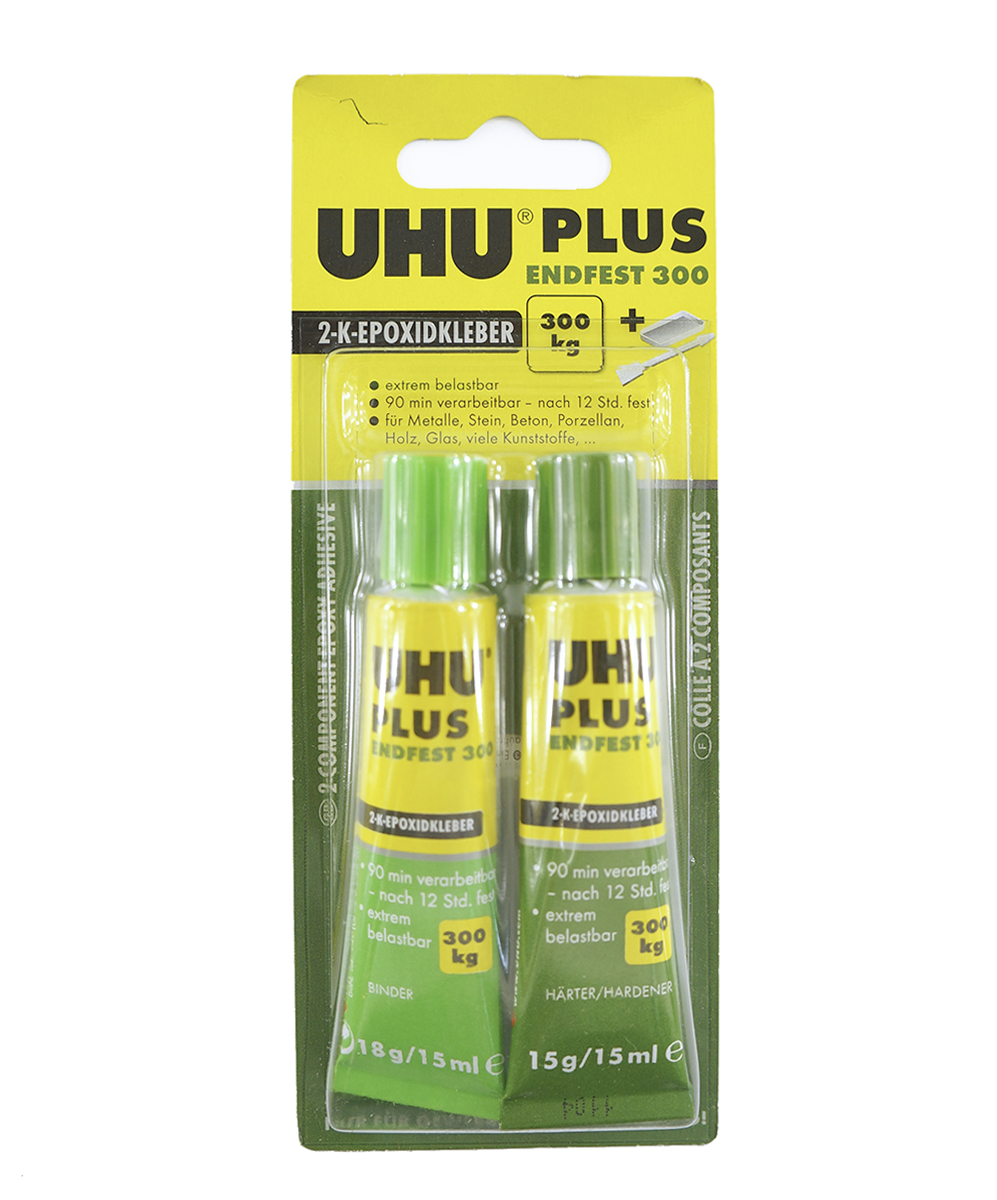 Двухкомпонентный клей на основе эпоксидной смолы для сверхпрочного склеивания большинства материалов: металл, стекло, фарфор, дерево, резина, твердые пластики. Рабочее время смеси – 1-1,5 часа. Клеевой слой становится прозрачным и приобретает светло-желтый оттенок. Устойчив к неконцентрированным кислотам, щелочам, маслам, старению, влажности, растворителям. Клеевое соединение сохраняет свойства при t от -40 С до +80 С. Выдерживает нагрузку до 300 кг/см2 . Не содержит растворитель.