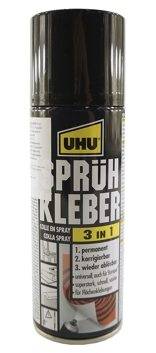 Данный клей-спрей пригоден для 3-х способов склеивания: перманентного, с возможностью коррекции и неперманентного (с односторонним нанесением, при котором поверхность, на которую нанесен клей, пиробретает самоклеящиеся свойства и может быть прикреплена многократно)