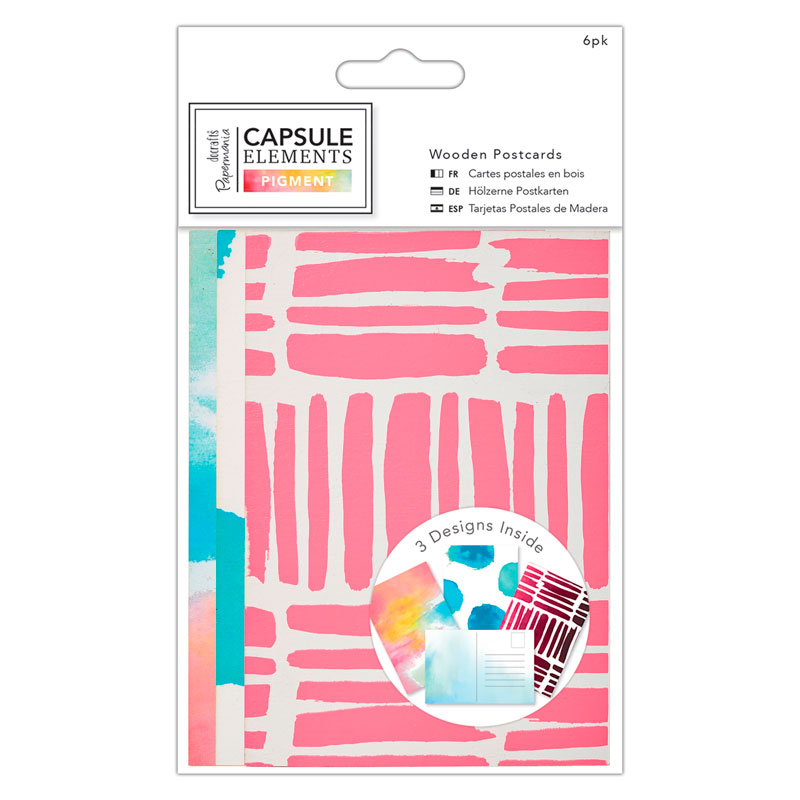 Gela.ru представляет вашему вниманию коллекцию материалов для скрапбукинга DOCRAFTS серии Papermania Elements Pigment. Коллекция разработана командой профессиональных дизайнеров компании DOCRAFTS и исполнена в едином стилевом решении. Основу дизайна этой коллекции составляют потрясающие яркие и цветные текстуры поверхностей в современных дизайнах. Этот набор включает в себя 6 фольгированных и печатных деревянных открыток в 3 индивидуальных дизайнах. Каждая открытка имеет размеры 150 х 100 мм. Дизайн-решение каждой открытки исполнено в общей стилевой и колористической концепции коллекции. Все заготовки изготовлены из высококачественной бумаги плотностью 300 г/см с принтом, что гарантирует качественное исполнение вашего скрап-проекта.