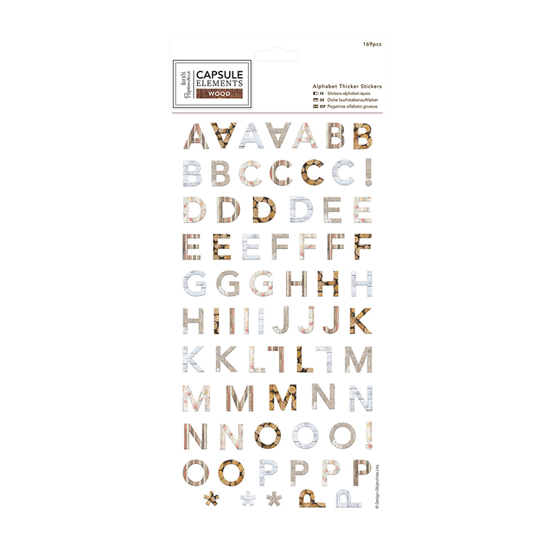 Gela.ru представляет вашему вниманию коллекцию материалов для скрапбукинга DOCRAFTS серии Papermania «СAPSULE Elements Wood». Коллекция разработана командой профессиональных дизайнеров компании DOCRAFTS и исполнена в едином стилевом решении. Основу дизайна этой коллекции составляют натуральные фактуры дерева и мягкая пастельная цветовая гамма. Набор наклеек «Elements Wood» включает 169 элементов - букв латинского алфавита и дополнительных символов и знаков препинания. Все наклейки выполнены в общей стилевой концепции коллекции и имитируют поверхность и фактуру дерева. Качественное клеевое покрытие позволяет надежно зафиксировать наклейки в вашей работе. Высота букв наклеек - 25 мм.