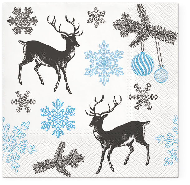 Салфетки трехслойные для декупажа, коллекция "Lunch"  TETЕ a TETE "Зимние олени - голубой" . Арт TL801805