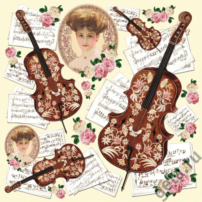 —Салфетка рисовая "Леди и скрипки". Арт DFT193