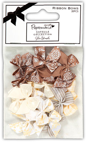 Если вы не сторонник минимализма и предпочитаете использовать в работе большое количество бантов и лент, тогда вам подойдут наборы декоративных элементов от компании Docrafts. Банты выпускаются в наборах различного цвета и изготовлены из различных материалов. Также выпускаются наборы декоративных лент с надписями. Многообразие форм и расцветок позволит вам подобрать именно то, что вам необходимо в работе.