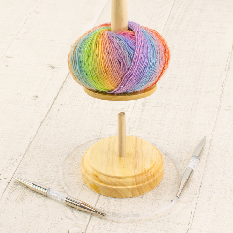 Устойчивая деревянная конструкция, дерево отшлифовано. Клубок свободно вращается, нить плавно разматывается во время вязания.