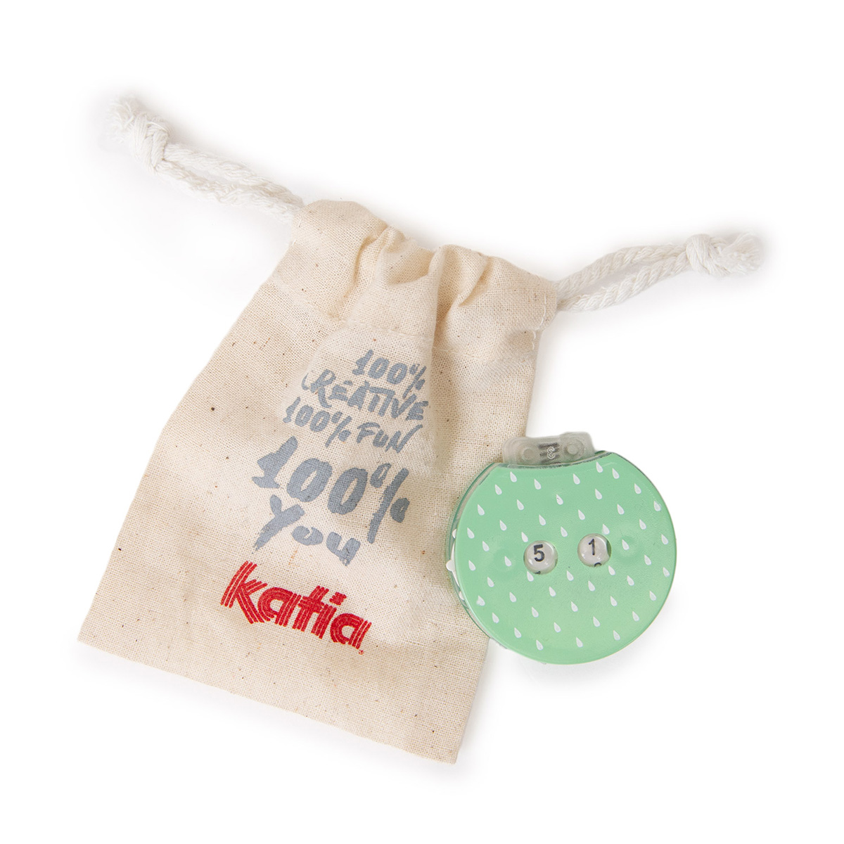 Следите за своими стежками и рядами во время вязания с помощью этого счетчика рядов красивого мятно-зеленого цвета. Когда вы закончите свой проект, храните счетчик рядов в хлопчатобумажном пакете с застежкой на шнур. Поместите этот магнитный счетчик рядов на соответствующий магнитный браслет из коллекции аксессуаров Katia 100% You, чтобы вы могли легко нажимать кнопку счетчика рядов во время вязания. Размеры счетчика рядов: 4 см в ширину и 1,5 см в высоту.