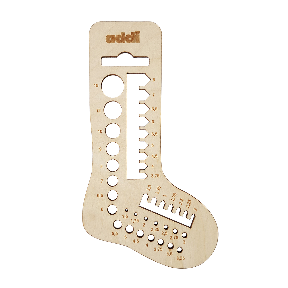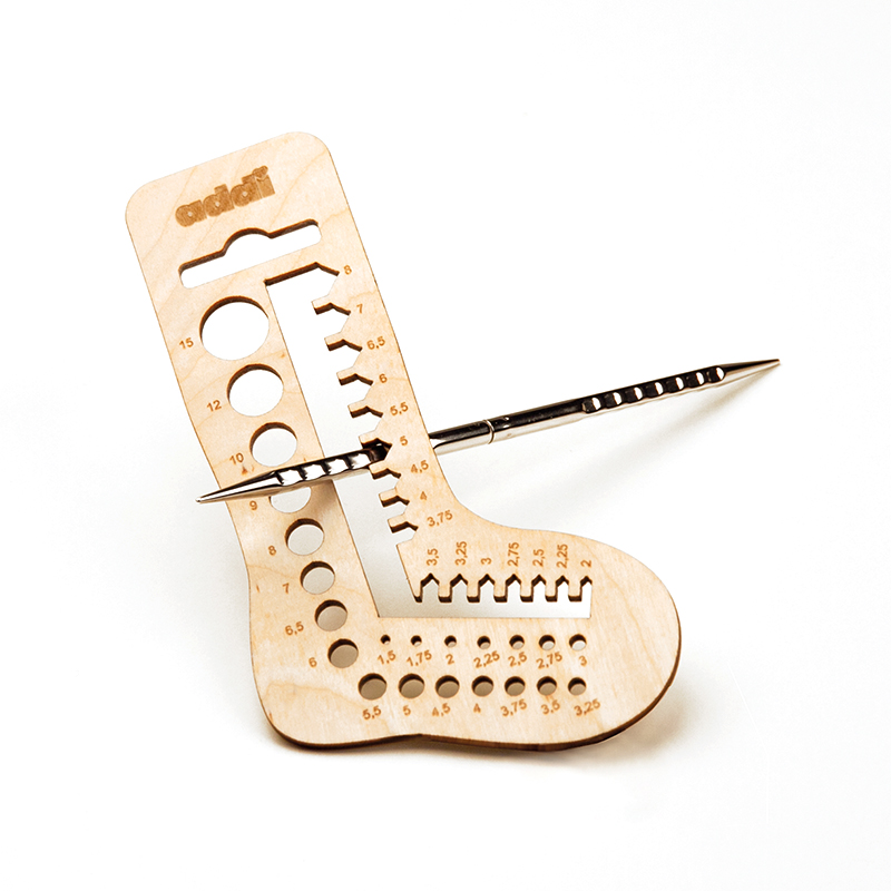 Натуральность и точность – новые деревянные измерители спиц addiCalibro сочетают в себе натуральное дерево и простоту использования для измерения размеров спиц. Четверная функция - настоящая изюминка. В дополнение к использованию с размерами для классических спиц addi, есть также блоки для квадратных спиц, таких как addiNovel, для вязальных крючков и так же встроенная линейка.