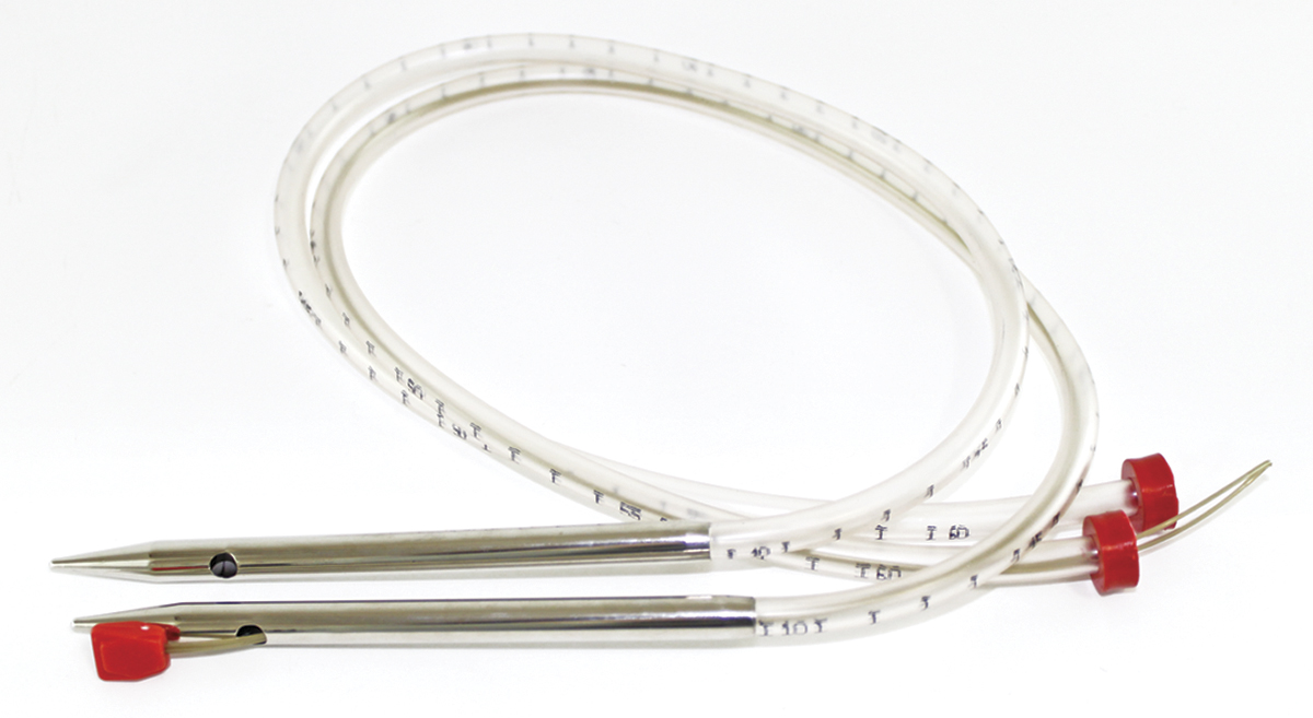 Спицы идеальны для создания плотных многоцветных полотен. С помощью них можно связать замечательное вязаное пальто, плед, теплый жакет. Внутрь спиц для ткачества продеваются две нитки от 2-х разных клубков, затем набираются петли от 3-его клубка, как при обычном вязании, а потом через них с помощью торчащей из пластиковой трубки петли, протягивается нить из спицы - происходит имитация процесса ткачества. Полотно получается объемное, теплое и мягкое. Ткачество и вязание с помощью одного иструмента.