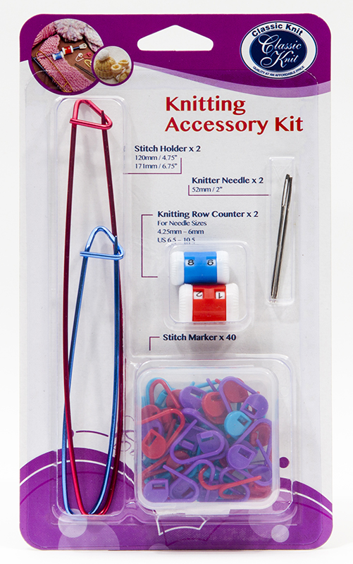 В данном комплекте специально собраны самые необходимые аксессуары для вязальщицы. На обратной стороне упаковки находятся фотографии с информацией по использованию.