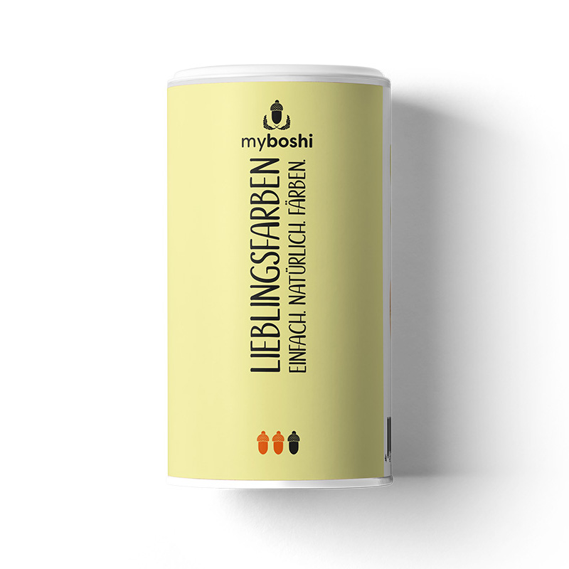 Доведите 2л воды до кипения во второй кастрюле. После закипания, снимите кастрюлю с плиты, добавьте весь краситель myboshi-Lieblingsfarben и хорошо размешайте. Закройте крышкой и оставьте на 15 минут. Затем поставьте опять на плиту и и томите на самом низком огне 45 минут. Красители представляют собой готовую смесь из растительных компонентов. Использовать его можно несколько раз, так что не выливайте раствор красителя после первого применения. Результат окрашивания натуральных тканей зависит от многих факторов и итог не всегда одинаков. При этом вода играет значительную роль: жесткость воды, содержание минералов и уровень загрязнения влияют на конечный результат окрашивания. Лучше всего подходит дождевая и водопроводная вода. Чем дольше Вы окрашиваете изделие, тем лучше краситель проникает в волокна. Оставьте шерсть на ночь в красителе, для этого не надо оставлять плиту включенной.