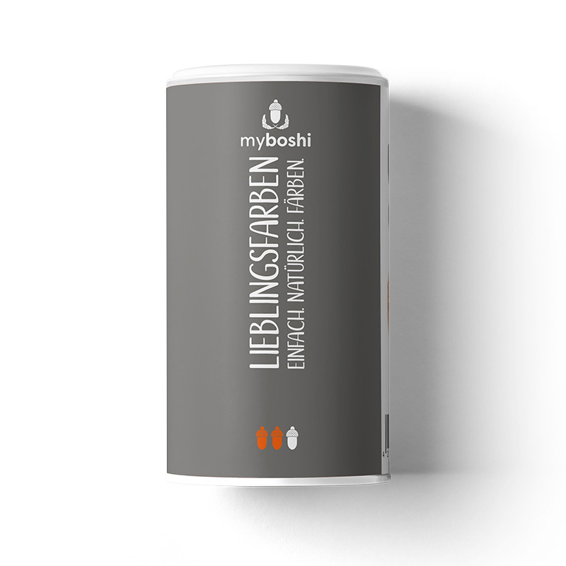 Доведите 2л воды до кипения во второй кастрюле. После закипания, снимите кастрюлю с плиты, добавьте весь краситель myboshi-Lieblingsfarben и хорошо размешайте. Закройте крышкой и оставьте на 15 минут. Затем поставьте опять на плиту и и томите на самом низком огне 45 минут. Красители представляют собой готовую смесь из растительных компонентов. Использовать его можно несколько раз, так что не выливайте раствор красителя после первого применения. Результат окрашивания натуральных тканей зависит от многих факторов и итог не всегда одинаков. При этом вода играет значительную роль: жесткость воды, содержание минералов и уровень загрязнения влияют на конечный результат окрашивания. Лучше всего подходит дождевая и водопроводная вода. Чем дольше Вы окрашиваете изделие, тем лучше краситель проникает в волокна. Оставьте шерсть на ночь в красителе, для этого не надо оставлять плиту включенной.