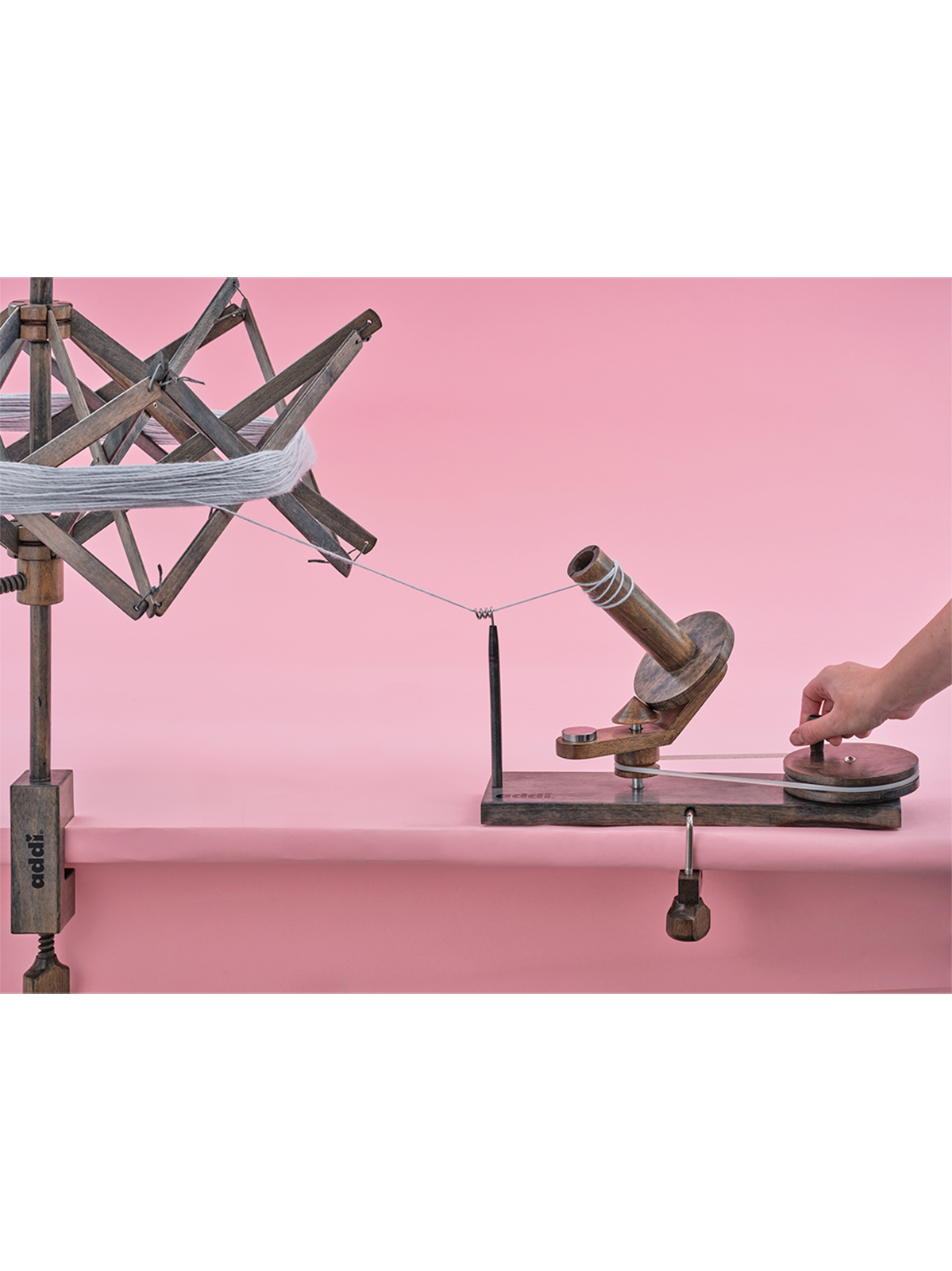 - перемотки пряжи вручную. Вращающийся зонт упрощает процесс перемотки руками и не дает пряже путаться,