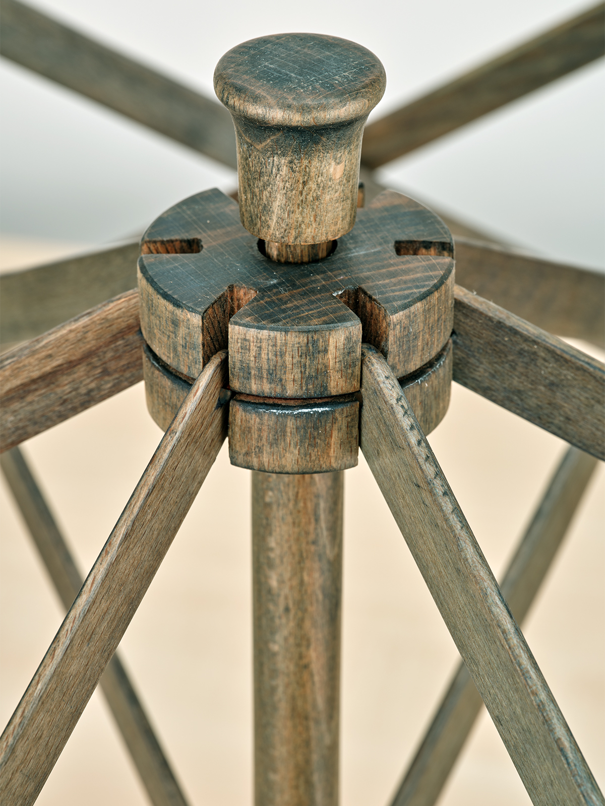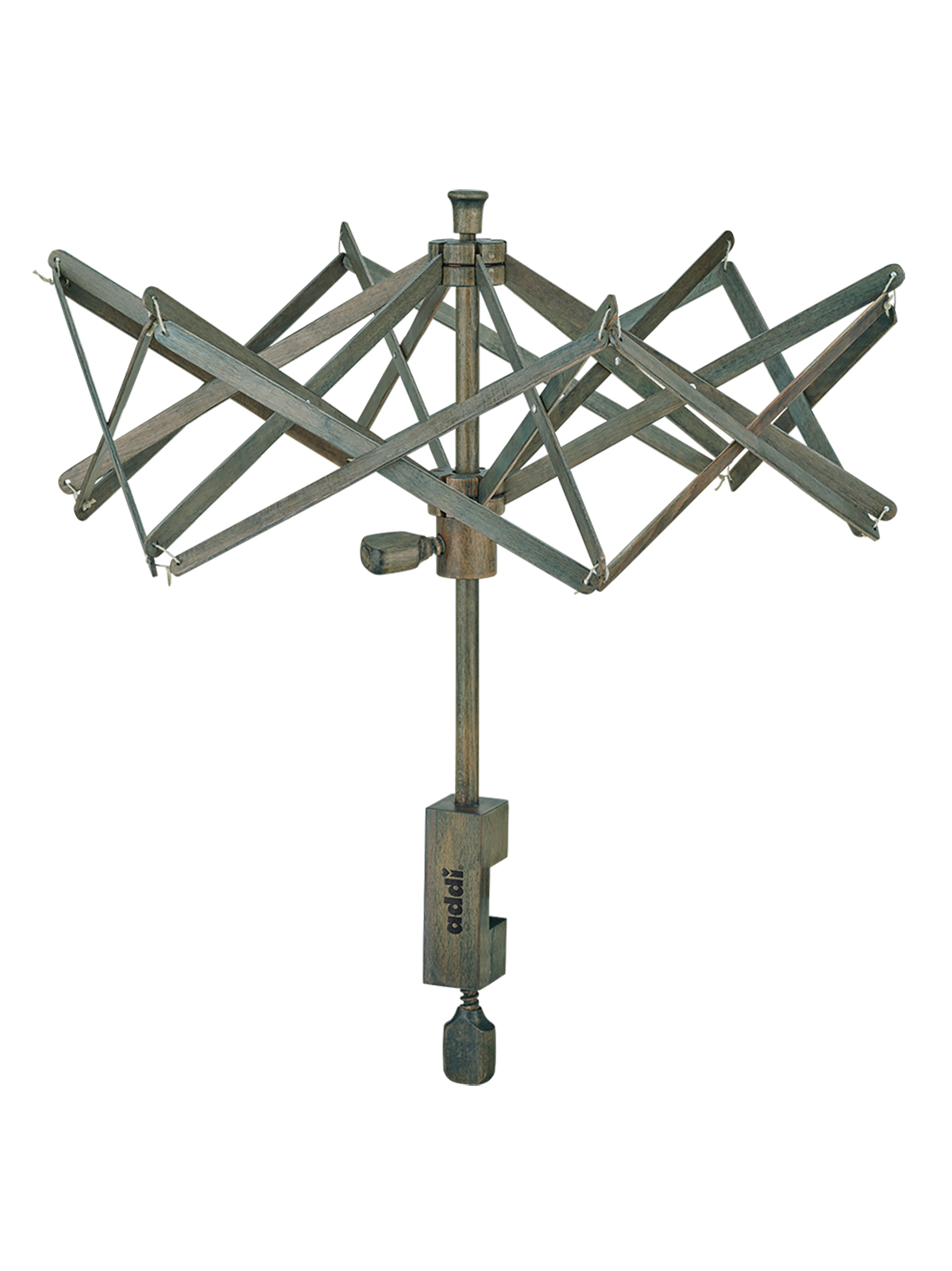 Зонт addiUmbrella – это приспособление для перемотки пасм с длиной нити по окружности до 215 см. Зонт addiUmbrella изготовлен из прочного массива бука. Дерево отлично отполировано и не имеет дефектов и зацепок, что гарантирует сохранность пряжи при перемотке. Специальное лакированное покрытие не только защищает дерево, но и придаёт ему синий оттенок, создавая винтажный вид. Зонт раскрывается легко и плавно, его спицы имеют прочные соединения.