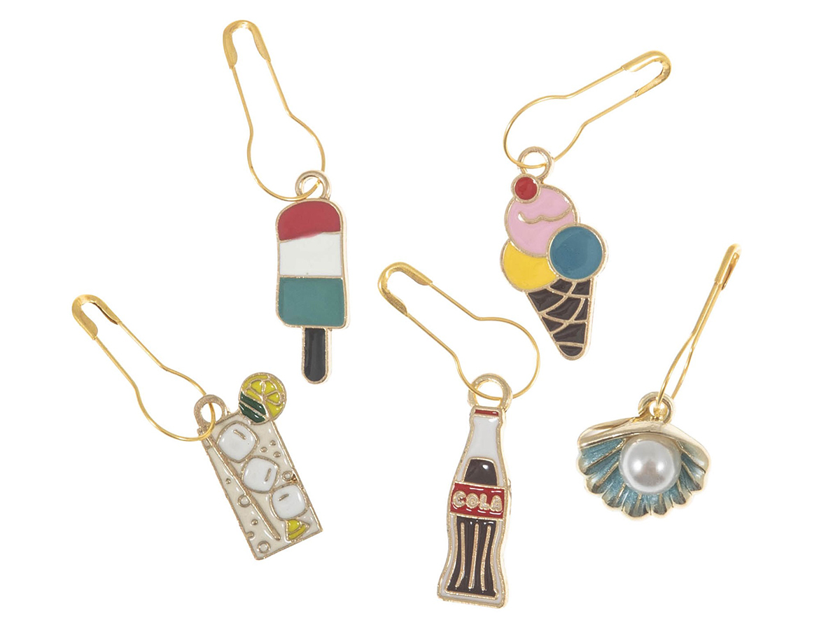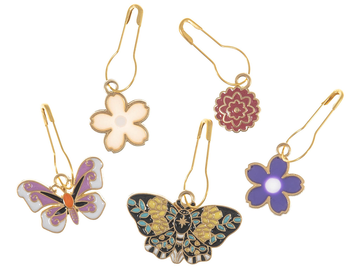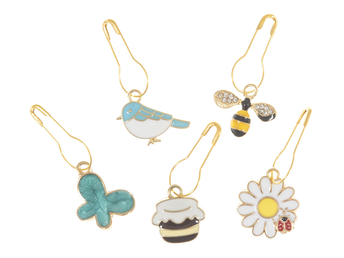 Коллекция красивых металлических эмалевых маркеров на булавках для вязания. Прочные и универсальные булавки-маркеры позволяют легко прикреплять маркеры к спицам или крючку или к стежкам. Они лёгкие, поэтому не будут растягивать ваши швы. На каждом дисплее представлены 4 уникальные коллекции. В каждом наборе есть 5 металлических маркеров для вышивки с эмалевым покрытием и забавными коллекциями, а также 5 уникальных тем, в том числе «Лето», «Закуски», «Время чая», «Счастливая пчела» и «Сад бабочек». Материал содержимого: чугун, сталь. Размеры дисплея (в закрытом состоянии): Ш26,5 x Д21,5 x В6 см. Размеры дисплея (в собранном виде): Ш26,5 x Д21,5 x В33 см. Вес: 650 г.