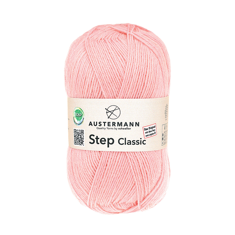 Cтирка при максимальной температуре 40 С в режиме шерсти, отбеливание запрещено, не сушить в стиральной машине, максимальная температура подошвы утюга - 110 С, только сухая чистка. Толщина спиц и крючка 2,5 - 3 мм. Можно вязать спицами (крючком), можно на вязальной машине. Примерный расход: 1 мотка хватает на пару мужских носков, на женское изделие с рукавами потребуется около 450 граммов, на мужское изделие - около 650 граммов. Пряжа серии Step имеет пропитку экстрактами Алое вера и Жожоба, что придает мягкость и комфорт при носке изделий. Вся пряжа Austermann производится в Германии, при изготовлении продукции применяется технология EXP 4- это метод обработки пряжи без хлора.