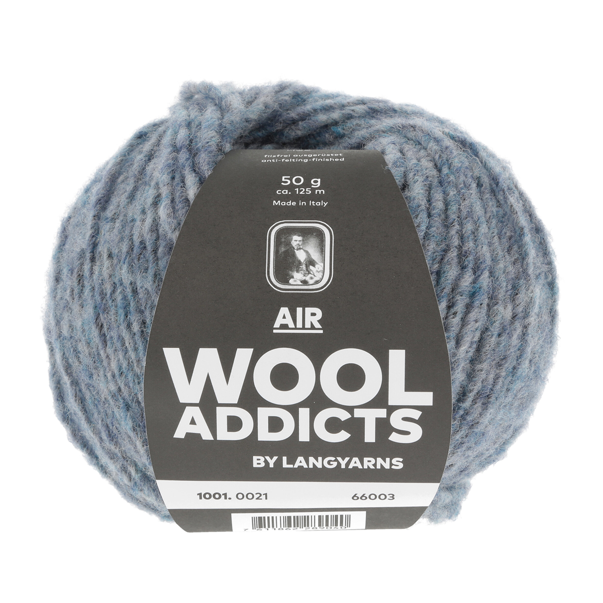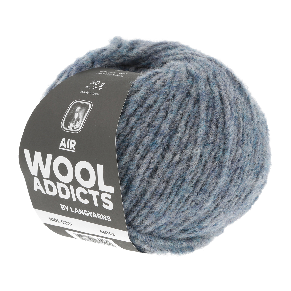 В Air волокна мериноса намотаны на нейлоновую сердцевину, что делает ее в меру плотной и толстой. Пряжа подходит как для объемной вязки так и для гладкой, и используется преимущественно для демисизонных изделий. Очень мягкая бережная стирка при температуре 30 С, отбеливание запрещено, разрешена бережная сушка в стиральной машине, утюжка при температуре 110 С, сухая чистка, толщина спиц 5 - 5,5 мм, мужчины - 450 г, женщины - 300 г, дети - 200 г.