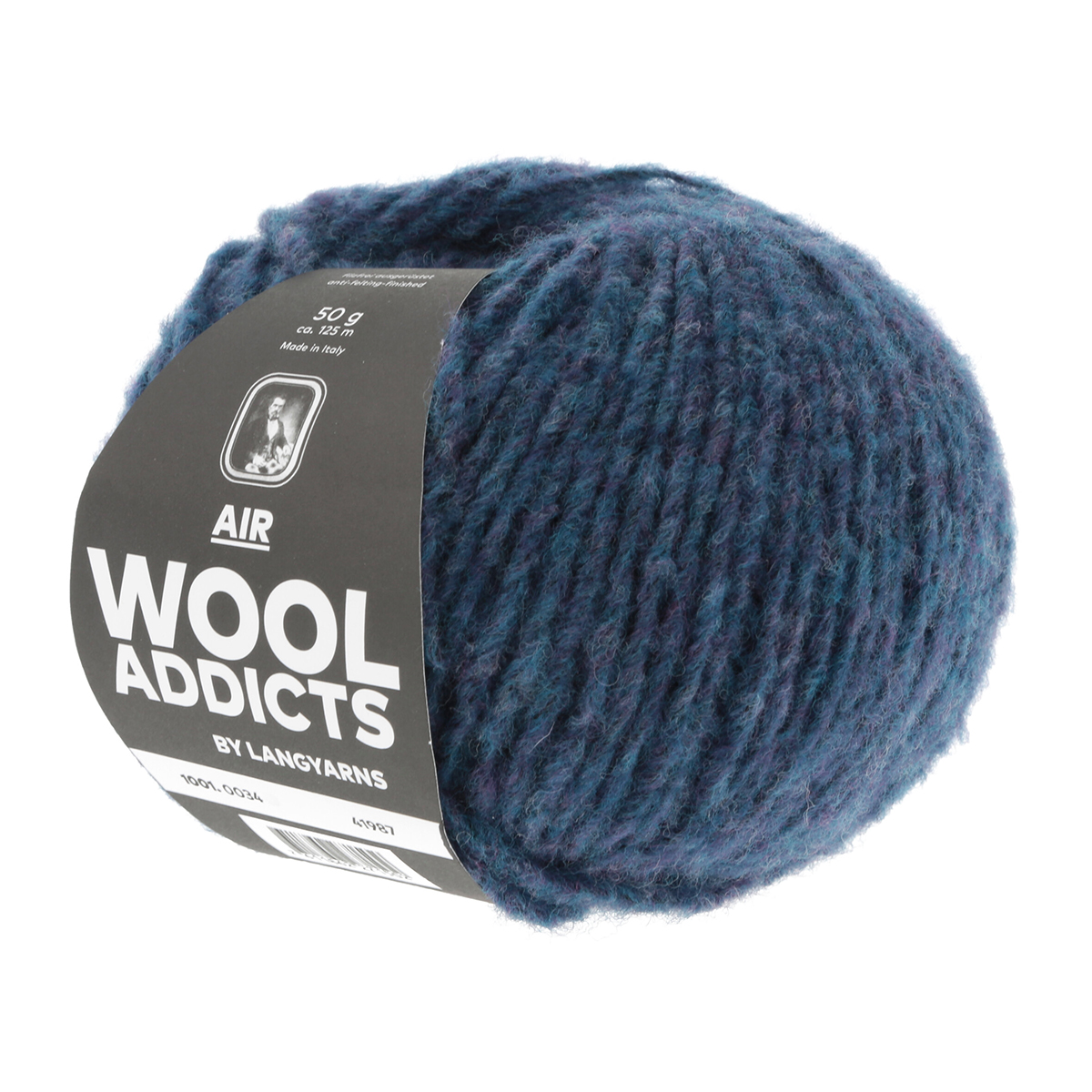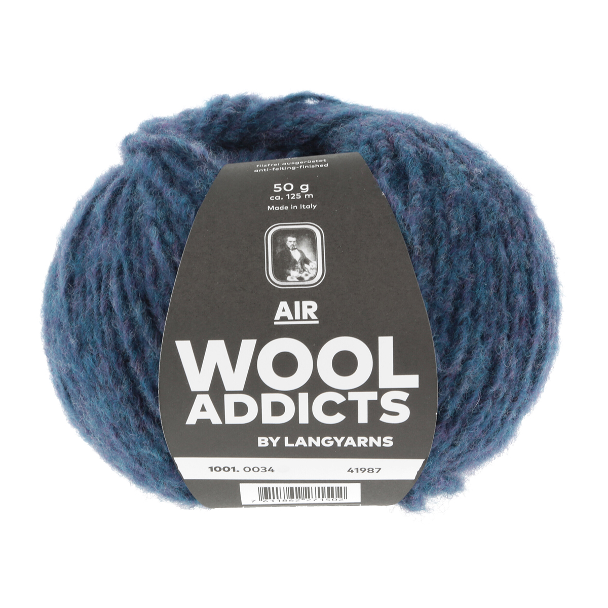 В Air волокна мериноса намотаны на нейлоновую сердцевину, что делает ее в меру плотной и толстой. Пряжа подходит как для объемной вязки так и для гладкой, и используется преимущественно для демисизонных изделий. Очень мягкая бережная стирка при температуре 30 С, отбеливание запрещено, разрешена бережная сушка в стиральной машине, утюжка при температуре 110 С, сухая чистка, толщина спиц 5 - 5,5 мм, мужчины - 450 г, женщины - 300 г, дети - 200 г.